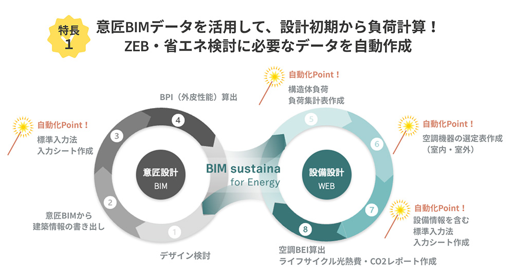 BIM sustaina for Energy (標準入力法)での意匠と設備のスムーズな連携が実現する性能検討のフロントローディング