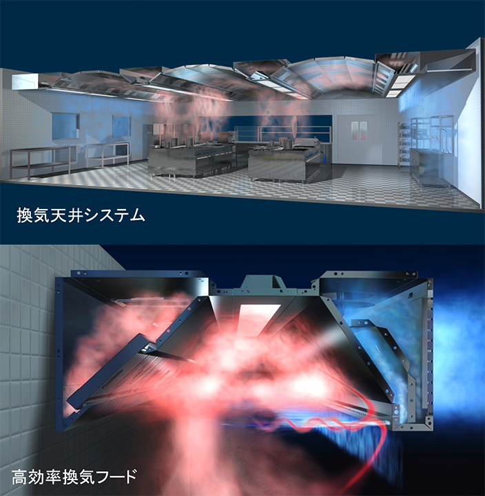 厨房用換気天井システム・高効率排気フード
