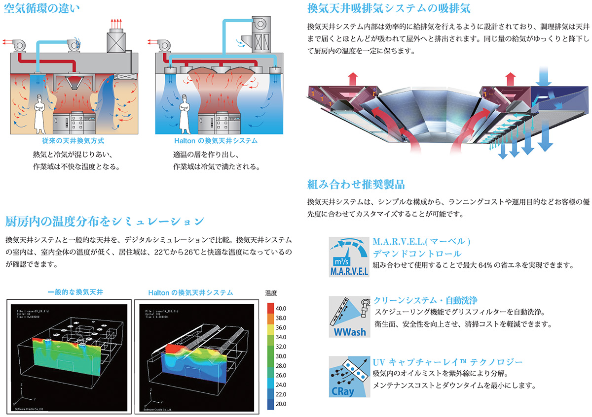 置換換気で環境改善と省エネ性を同時に実現し厨房の快適な温湿度環境と衛生管理に貢献いたします。