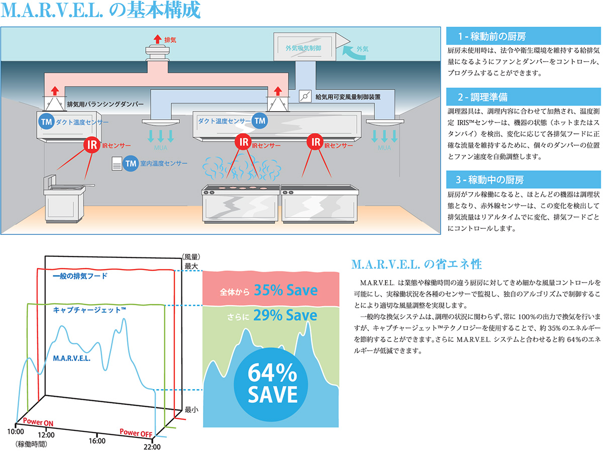 業務や稼働時間の違う厨房に対してきめ細かな風量コントロールを可能にします。