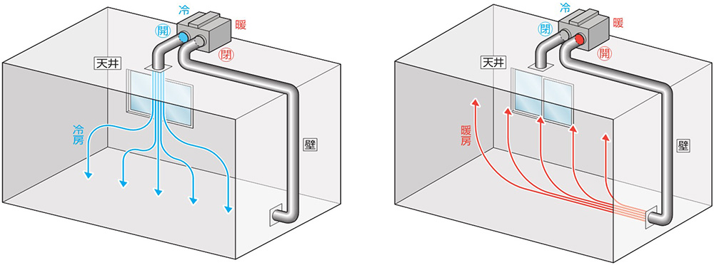 - 空気温度に応じて自立的にて切替