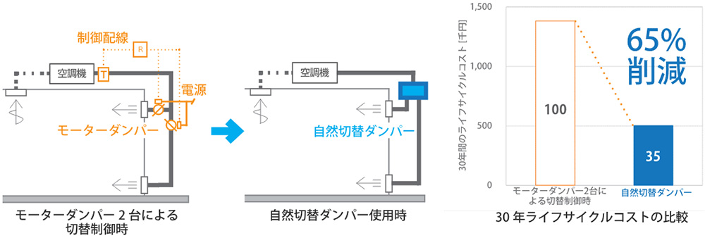 モーターダンパーによる制御時に比べライフサイクルコストを65%削減